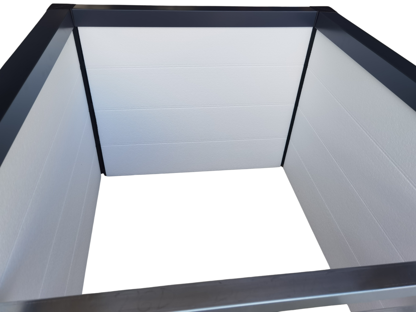 Izolacija debeline na najtanjšem delu 2cm in na najdebelejšem delu 4cm. Izolacija je narejena iz materiala EPS veje trdote, tako da bo zagotovo zdržalo obremenitev zemlje. Izolacija je že vstavljena v gredo. EPS je CNC odrezan tako, da se popolnoma prilega steni grede. Zataknjena je za rob lamel in fiksirana z ročajem vrtne grede. V primeru, da kombinirate z perforiranim dnom nam morate navesti višino na kateri bo perforirano dno da vam lahko odrežemo EPS na točno določeno višino. Pri gredi 1x1m se uporablja 4kose širine 86cm.