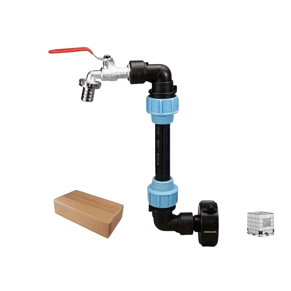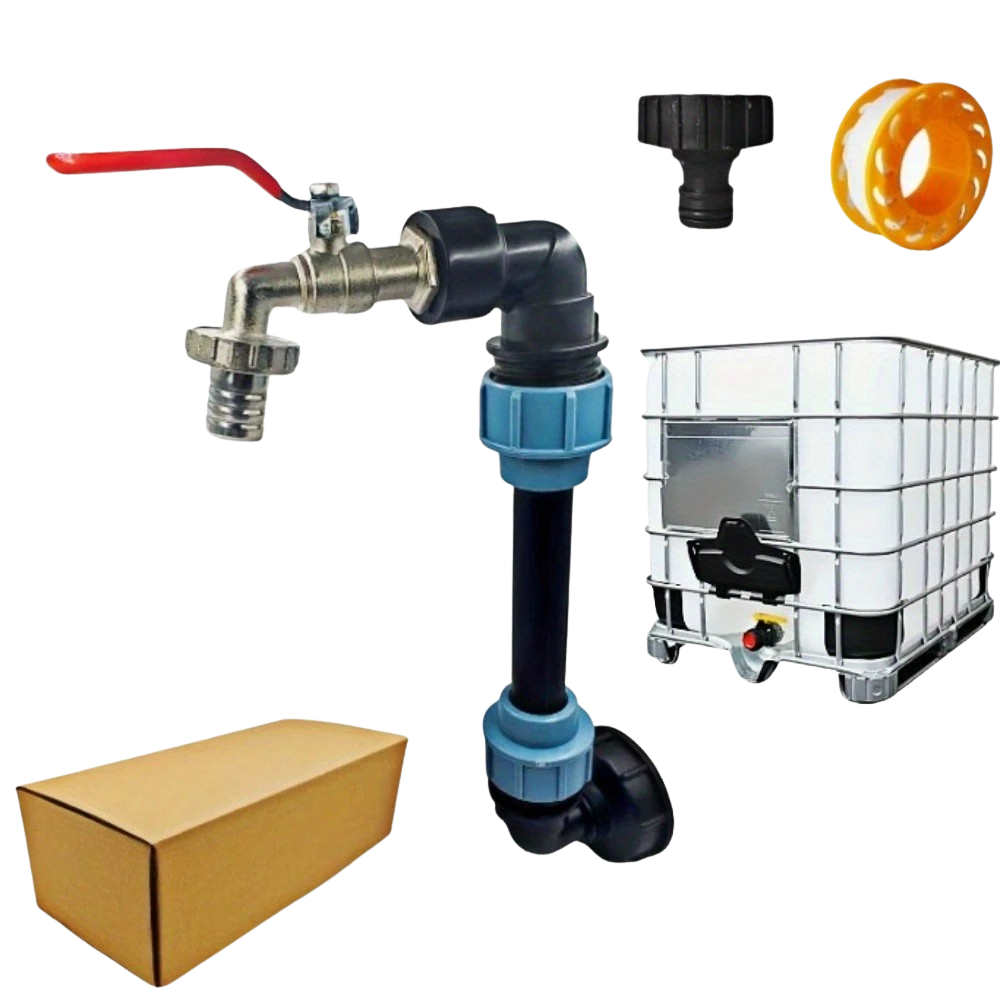Ta praktični pripomoček za vašo standardno cisterno 1000l oz zalogovnik vode. Dejansko jo samo sestavite in pritrdite na zalogovnik. Navoj je standarden in ustreza. V kompletu dobite pipo, dva PVC kolena, cev, teflonski trak za navoje, da vam tesni, standardni nastavek za cevi, ter univerzalno hitro spojko. Pipa je od tal oddaljena po višini in tako lahko postavite vedro spodaj. Cena ne vsebuje zalogovnika vode oz cisterne.